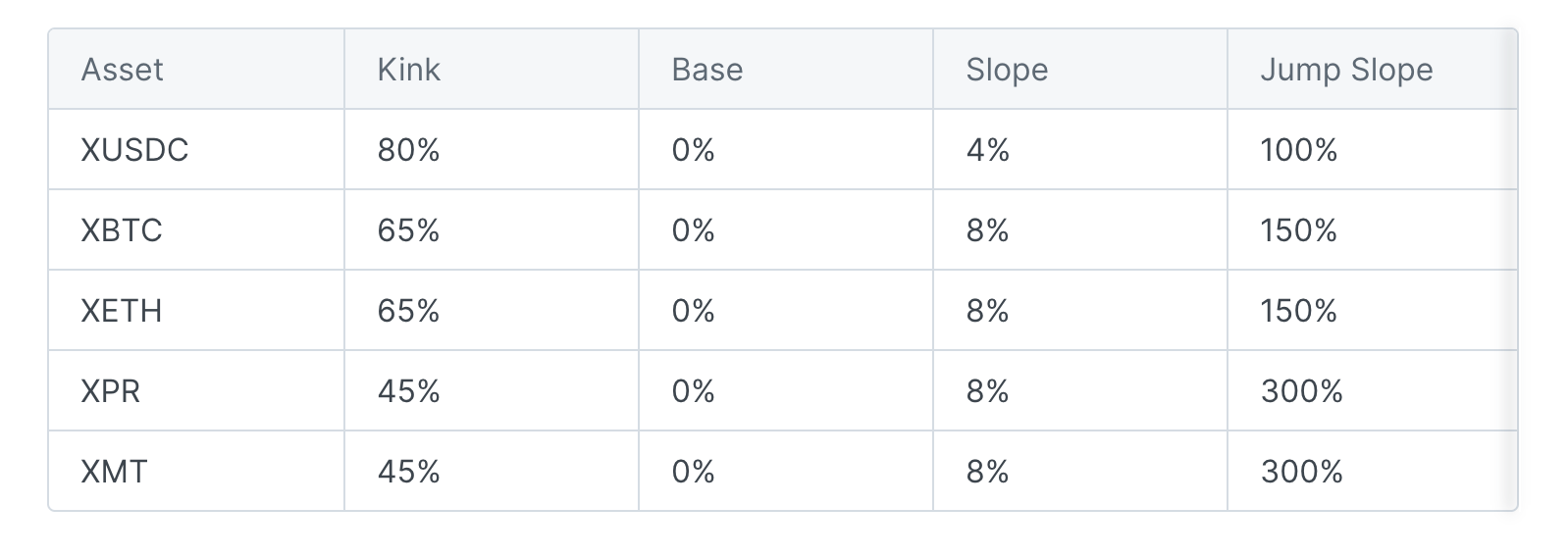 The interest model consists of two linear functions that meet at the optimal utilization rate. Parameters like slopes and base rates can be customized. Metal X Lending offers Variable Loans with rates that fluctuate based on the utilization rate, but all borrowers in the same market pay the same rates.